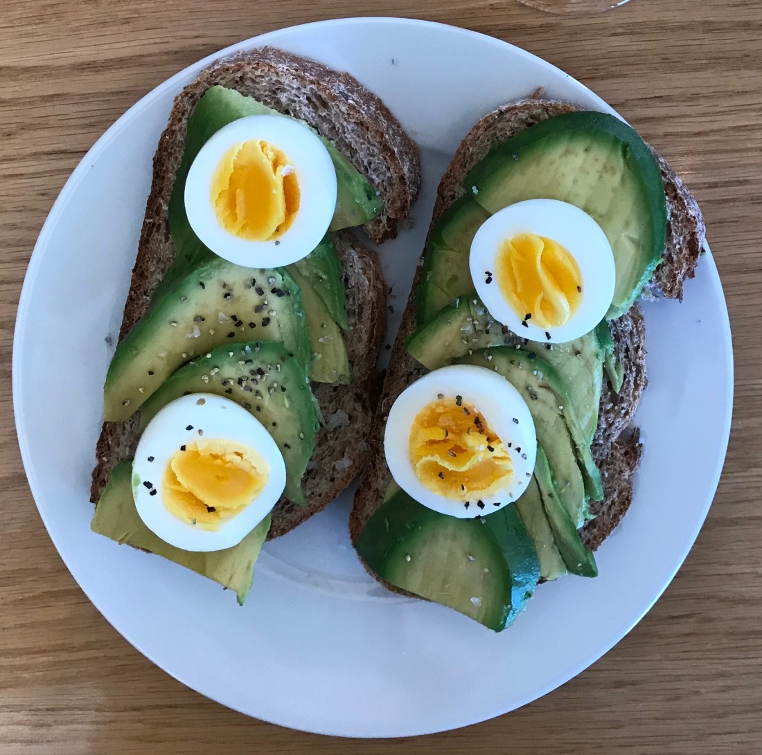 Waking up to a beautiful sunny morning needs a healthy and delicious breakfast. Boiled eggs on a toast with avocados, topped with salt and pepper is a great way to start your day. This delicious breakfast is easy and super healthy. Avocados contains a high amount of vitamin B9 and potassium which is great for you. Avocado is also a good source of vitamin E and B6. Avocados do contain tho many calories, about 16o kcal in one, but the fat from the fruit is healthy and good for you.